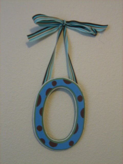 Nursery is ALMOST completed. Damn Babies R Us has not gotten our dresser/changing table in yet and that is the last piece we are waiting on. I did paint his letters the other weekend and hung them up above his crib. I really like how they turned out!