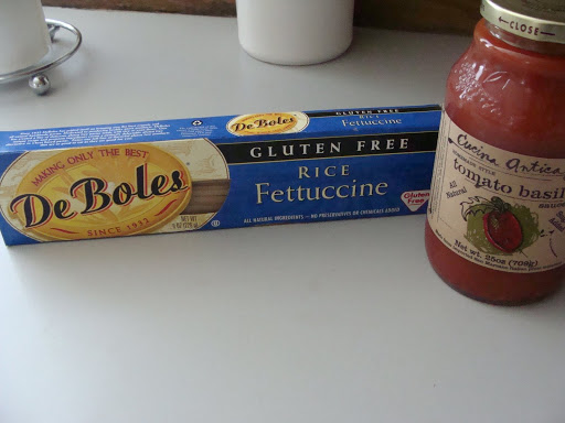 The fam went to Whole Foods, too. I usually do not frequent WH as they are fairly pricey and I can get the same product at FM for a lot less. But they do carry a wide range of different products and more options. I mostly look and pick a few things up that are on sale. Some almond butter, a few produce items, nuts, raisins, jam, etc. I was very pleased to find a sugarless pasta sauce! I have had a box of rice fettuccine noodles in the pantry for quite sometime but had yet to find a sauce that didn’t have sugar. Yes, I know I can make my own but I KNEW there had to be one out there.
