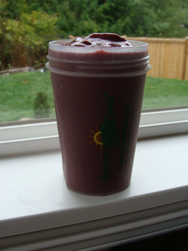 Afterwords I made myself a chilly, red green monster – it was so soothing! Almond milk, strawberries, a peach, half of an orange, a scoop of Amazing Meal (my last one! more is on the way :), blueberries and some water.